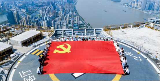 活动最后,所有党员登顶绿地中心,看着党旗飘扬,江水滚滚,满腔热血油然而生,刘丹丽带领员工们情不自禁唱起了《我和我的祖国》,在建党节来临之际,祝福祖国繁荣昌盛,更加美丽富强。