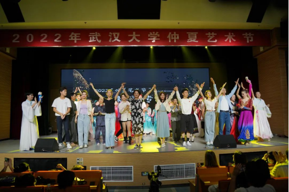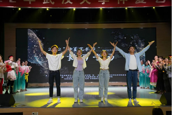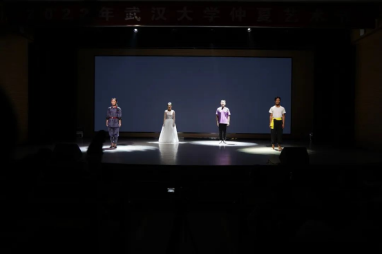 甫一开场,便被攫住了所有的心神,赤衣素练,笔走江山,这场视觉盛宴就从青年人的开阔中尽捧而出了。珠缨炫转星宿摇,花鬘抖擞龙蛇动。民族舞各彰华彩,中外秀汇聚芬芳。大家的衣袂和裙裾飘逸在人文馆四四方方的舞台上,也闪耀在彼此的生命里。我将怎样形容武大人的夜,是仲夏的星子,闪耀在生命的银河!