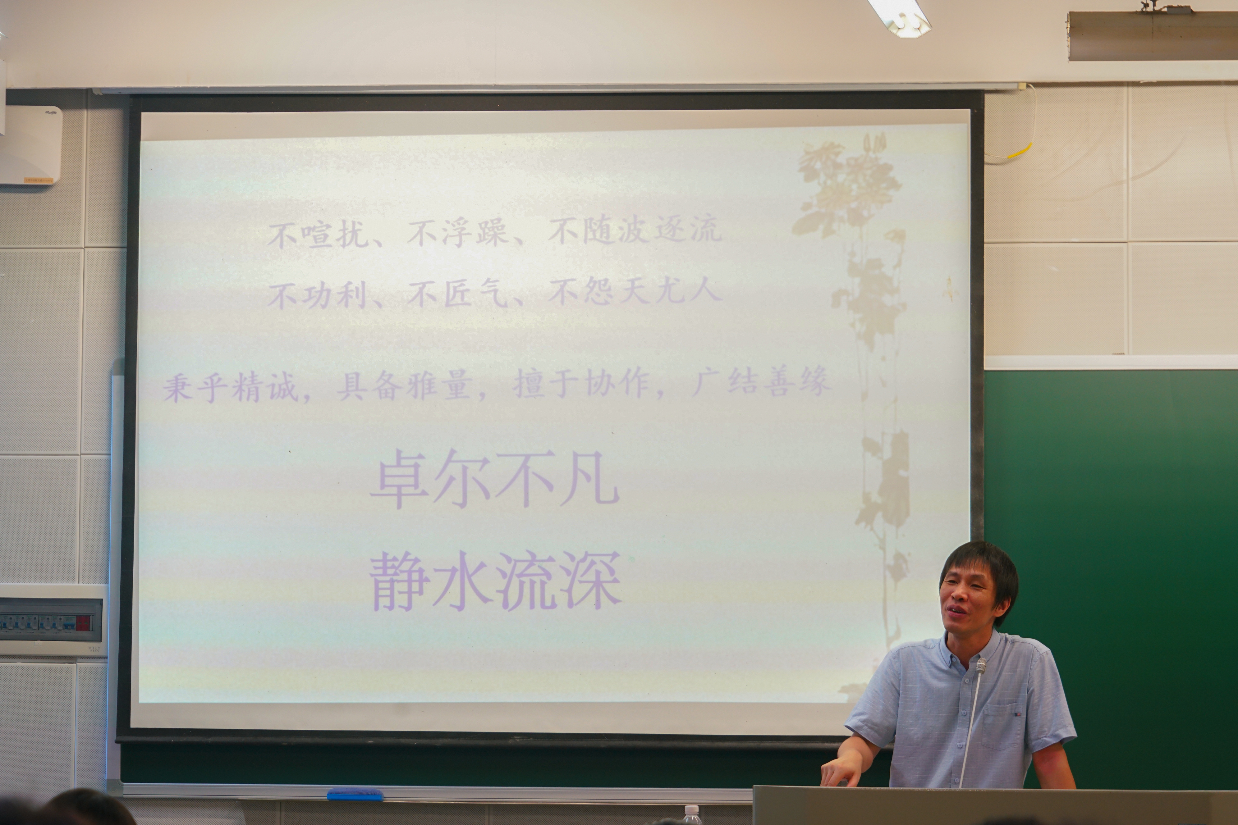 不喧扰、不浮躁、不随波逐流;不功利,不匠气、不怨天尤人。易栋老师寄语新生同学们“秉乎精诚,具备雅量,善于协作,广结善缘”,希望大家利用群体的力量,保持自己的出类拔萃,更要保证不让一个人掉队,做到“卓尔不凡,静水流深”。