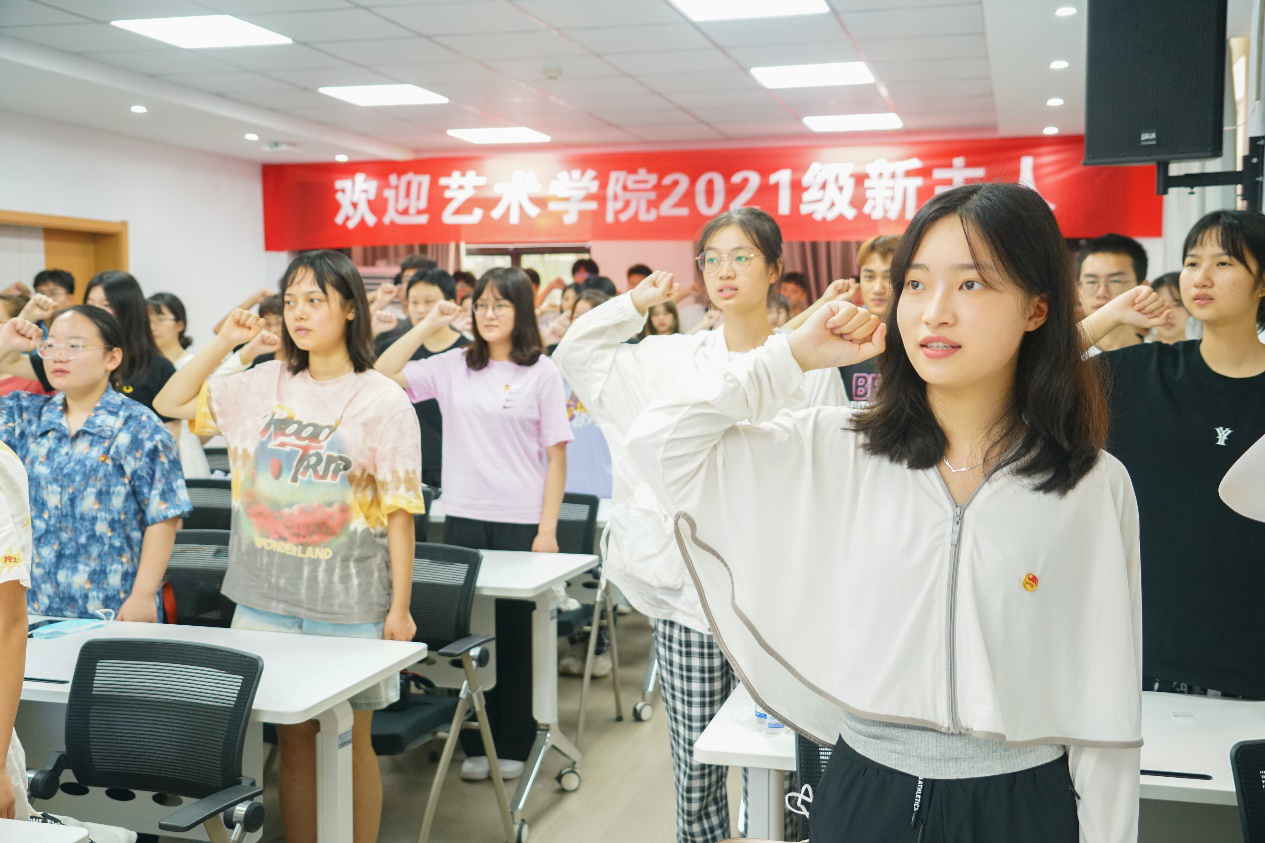 给新生们上党史第一课。伴随着激昂的团歌