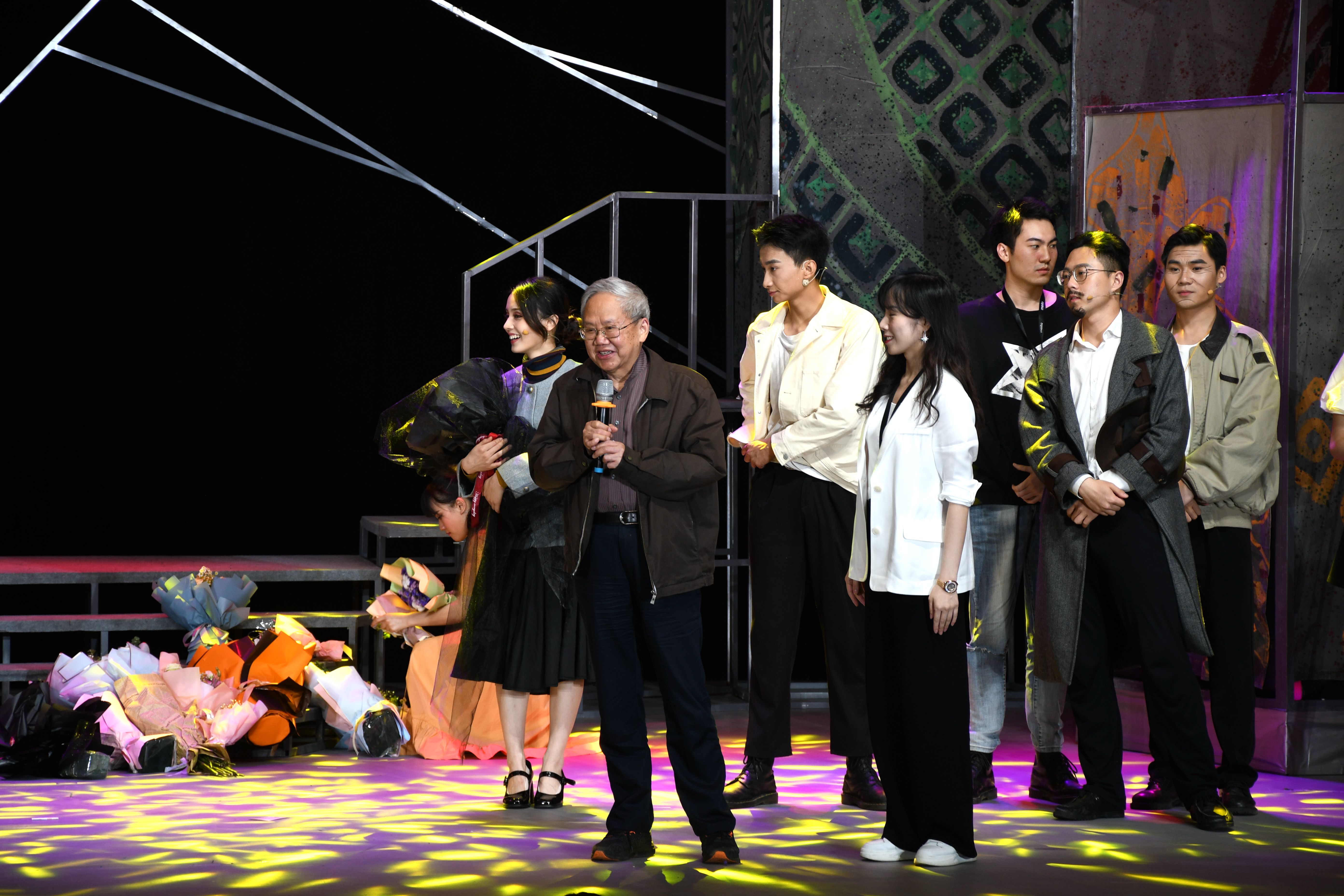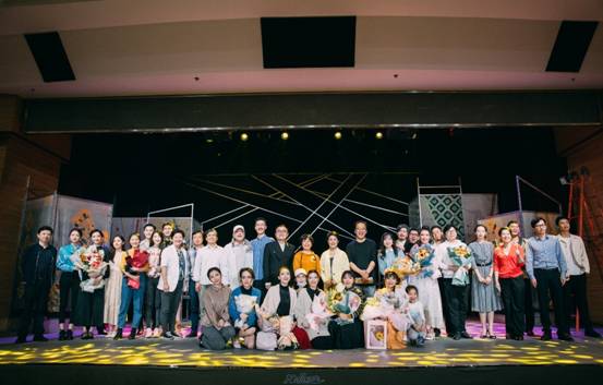2017级表演班毕业大戏导演万松玲老师和台下观众亲切互动,并向观众介绍了每一位幕后工作人员和演员同学们,言语中满是激动和面对毕业的同学们的不舍。