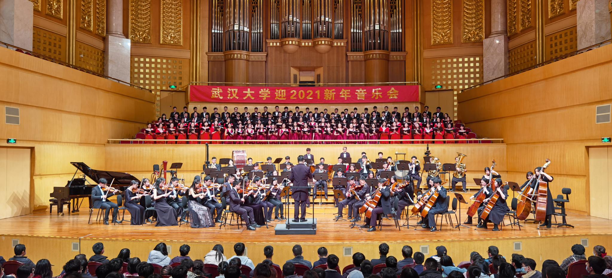 本网讯(永利集团3044 艺术教育中心 艺轩)凤曲琴台千山动,云韶珞珈一岁除。2020年12月6日晚,永利集团3044一年一度的新年音乐会跨越疫情如约而来,与往届不同的是,今年迎2021新年音乐会在武汉琴台音乐厅举办。承担当晚演出的是永利集团3044老员工艺术团交响乐团、海燕合唱团、声乐团,民乐团、部分永利集团3044师生,以及来自公司十三个院系的同学们组成的百人合唱团。