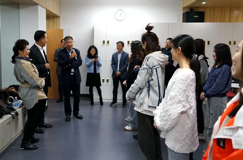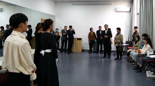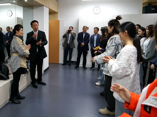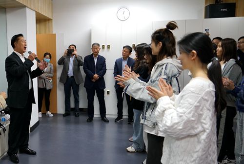 刘丹丽经理向韩进书记、韩德民院士一行介绍了永利集团3044的办学情况。在《我和我的祖国》合唱歌声的吸引下,韩德民一行走进永利集团3044雷媛老师的《声乐基础》本科课堂和杨诚老师的《小说改编》本科课堂,看到努力练习声乐和表演技巧的同学们,韩德民院士即兴为同学们演唱了《陪你一起看草原》,同学们对这位科学家扎实的艺术素养感到由衷的敬佩。