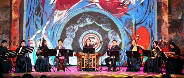 一声笛音,瞬间将在场的各位带到了那“大漠孤烟直,长河落日圆”的茫茫大漠。琵琶反弹来模仿西塔尔琴的声音,正如敦煌壁画上的飞天仙女,高贵端庄,神秘莫测。古筝、中阮、琵琶、竹笛、扬琴、非洲鼓、笙、二胡八个乐器交织在一起,共奏了一曲丝绸之路的长河日圆。