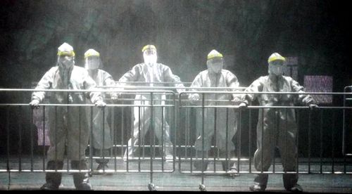 民族歌剧《天使日记》给我眼前一亮的是这次整体的舞美设计。一开始占据整个视线的黑幕竟然是一整块有着全息投影效果的透明幕布,十分新奇,也充分感受到了科技进步为艺术带来了极大的推动作用。同时,演员的站位和各个场景的来回切换、高低舞台、半显的舞台设计,都使整部歌剧有了极强的纵深感,内容也更加饱满。作为一部以抗议为题材的作品,它在剧情的处理上非常得当。疫情的危险与残酷是显而易见的,这部歌剧通过老教授和黄鹤的病故,凸显出普通人的伟大,和作为医生无私奉献,在所不辞的精神。一个个小的家庭作为缩影,折射出了疫情期间全体中国人民的责任感。灯光和维修工人是全剧的一个重要元素,贯穿全文。该剧运用这一元素更为成功地为观众梳理全文脉络,是整个剧情的走向更为明晰。在最后,路灯陆续点亮,和远处的朝阳交相辉映,让我们看到了铺洒在整个祖国大地的希望和爱。