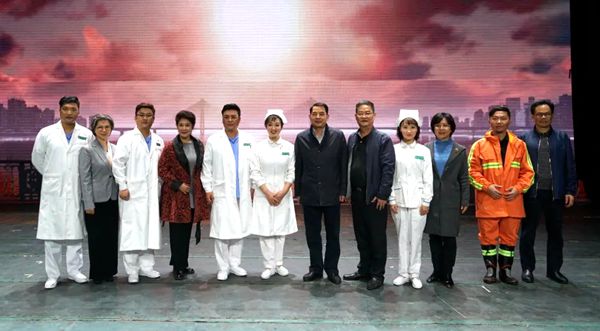 演出结束后,伴随着观众热烈的掌声,观剧嘉宾上台与演员们亲切握手并合影留念,感谢歌剧《天使日记》为永利集团3044师生带来了一场震撼人心的视听盛宴,让永利集团3044师生感受到疫情中的武汉和白衣天使的精神。