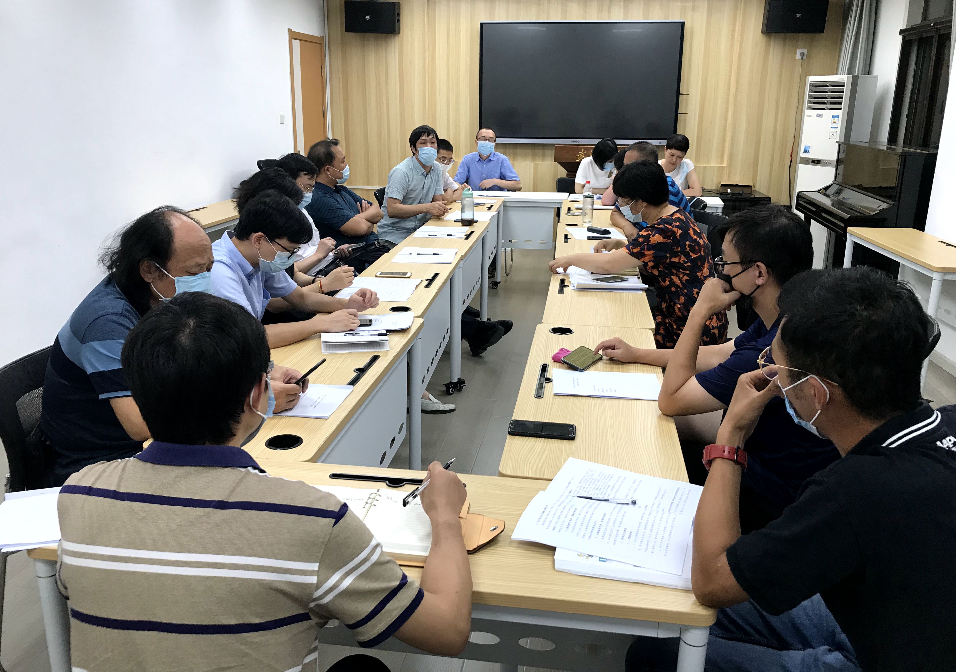 李海波副书记和刘涛副经理分别就新学期开学的相关要求与“十四五”规划编制的筹备工作情况,作了说明。随后,全体教职工以系为单位分成两个小组,进行“十四五”规划编制的研讨交流。彭万荣教授谈到,团队建设是公司发展的命脉,需将一级学科博士点申报作为公司“十四五”规划的重中之重,瞄准申报指标,创造有利条件,为公司教师队伍建设和人才培养提供有力支撑。孟君、汪余礼等教授指出,要加强梯队建设,补充中青年团队力量,根据研究方向形成科研团队,提升科研产出的效率。黄献文副经理提出,公司要继续坚持“一体两翼”的结构,从人才引进、教师招聘、博士点申报等方面积极争取公司的政策支持。陈晖、吴靓等老师建议,建设创作、表演、通识课等研究团队,推动疫情题材的剧目创作和艺术活动展演。吴博、洪一鸣等老师建议,优化艺术团管理机制,增设戏剧团,完善非专业员工的吸纳及培养政策。易栋和王珊老师分别代表两个小组进行了总结发言。