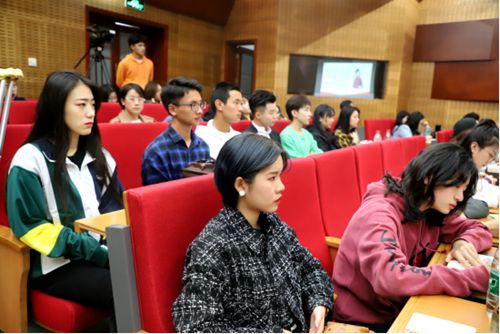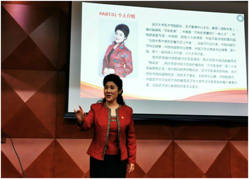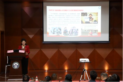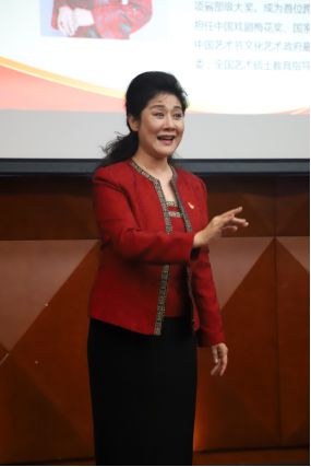 刘丹丽经理首先以一首《南湖的船》引入,以富有感情的歌曲演绎,扣动心灵,激发同学们对党的热爱。她通过自己的学习经历、工作演出经验、社会体验等与同学们分享了如何践行不忘初心、传承经典历史使命,做德艺双馨的艺术人才的体会分享。