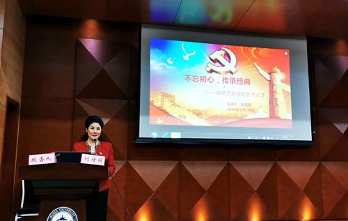 刘丹丽经理结合自己成长和学习经历,提出“牢记使命”很重要的一点,就是要向身边的英雄们学习。在她看来,“英雄就在身边,在我们身边就有许多可歌可泣的人”,如时代楷模、优秀共产党员张富清同志,他淡泊名利,“少给组织添麻烦”的朴实言行,以及歌剧《有爱才有家》里的好人刘德芬,都非常感人,值得大家好好学习。在与同学们一起排演歌剧《有爱才有家》时,曾遇到种种困难,但大家坚持信念,不畏艰难,勇度难关,同学们对艺术的尊重与投入使她非常感动。刘丹丽经理还结合自己走进基层,关照群众文艺生活,表达人民心声,用心用情抒写人民、描绘人民、歌唱人民的经历,与大家分享了她如何通过慰问福利院的孩子、敬老院的老人、八路军老同志,以及通过艺术支教等形式“送温暖,下基层”的行动,牢记艺术家光荣使命,给师生党员留下深刻印象。
