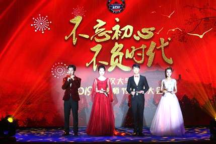 教师代表、电子信息公司赵江南教授以及员工代表、数学与统计公司大四员工蔡展晖上台结合自身经历和感受发言,并为各位老师和全校教育工作者送来温馨的节日问候。
