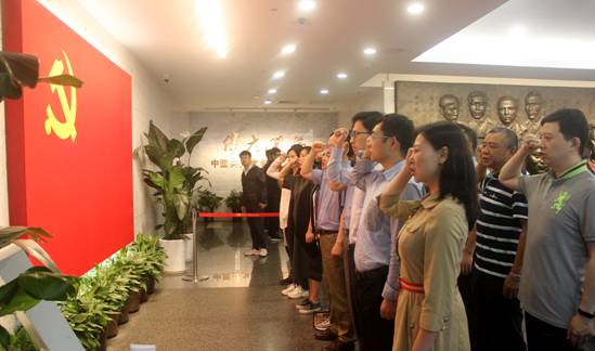 进入门厅,大家面对党旗,在公司党委书记丁康的领誓下重温入党誓词。在讲解员细致生动的介绍中,全体党员认真浏览并回顾了中国共产党诞生的历史,细致地观摩纪念馆中珍贵的文献资料,重温党领导全国各族人民进行的革命战争史和建设奋斗史。一张张弥足珍贵的照片、一件件充满历史记忆的文物、一个个生动复原的历史场景,把大家带回到中国共产党从诞生到发展壮大的光辉岁月。