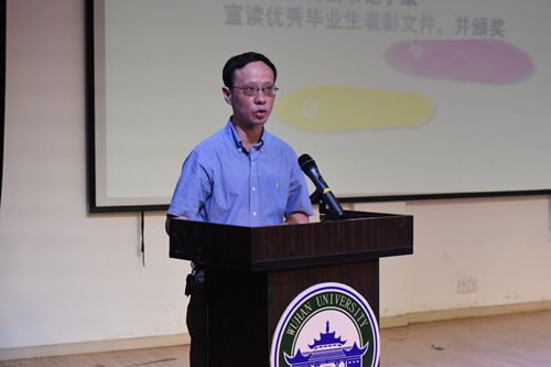 接着,薛峰副教授代表教师致辞。他说:首先祝贺各位毕业生顺利毕业,毕业是你们学习生涯的转折点,同时也是开启未来新征程的起点,同学们一定要继续努力!他在讲话中就毕业生们未来的人生规划提出了中肯建议,他说到:同学们一定要明确自己的人生理想并为之奋斗,调整好心态去应对以后人生路上的种种挑战。最后祝愿同学们在奋斗中实现人生理想,在坚持中实现自我突破!