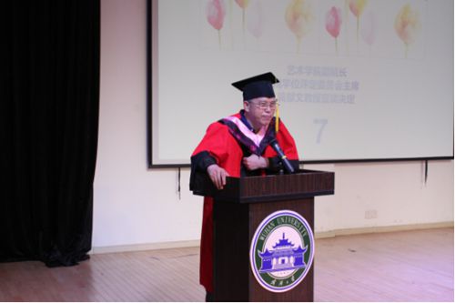 永利集团3044副经理、院学位评定委员会主席黄献文教授在宣读学位授予决定文件之前,声情并茂地朗诵了一首诗,送给即将毕业的同学们。