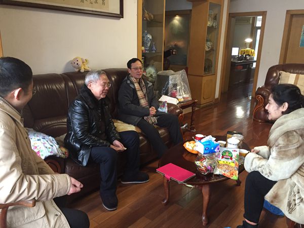 本网讯:(通讯员:李海波)瑞雪纷飞,冬日暖暖。在永利集团3044退休教师郑传寅老师的家里,到处洋溢着欢乐和温暖。2018年1月26日下午,艺术公司党委书记丁康、经理刘丹丽、副书记李海波等代表艺术公司党委和行政,来到永利集团3044老党员郑传寅教授家中,看望慰问郑传寅教授,向郑老师送去新年祝福与问候。郑传寅教授是永利集团3044二级教授,湖北省有突出贡献中青年专家,教育部“马克思主义理论研究和建设工程”《中国戏曲史》课题组首席专家,今年刚被聘为永利集团3044人文社会科学研究院驻院研究员。